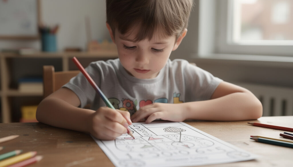 Cette méthode offre une occasion unique pour les enfants de pratiquer sans pression. Chaque fois qu’ils colorient une zone correctement, ils voient un dessin apparaître, renforçant ainsi leur motivation.